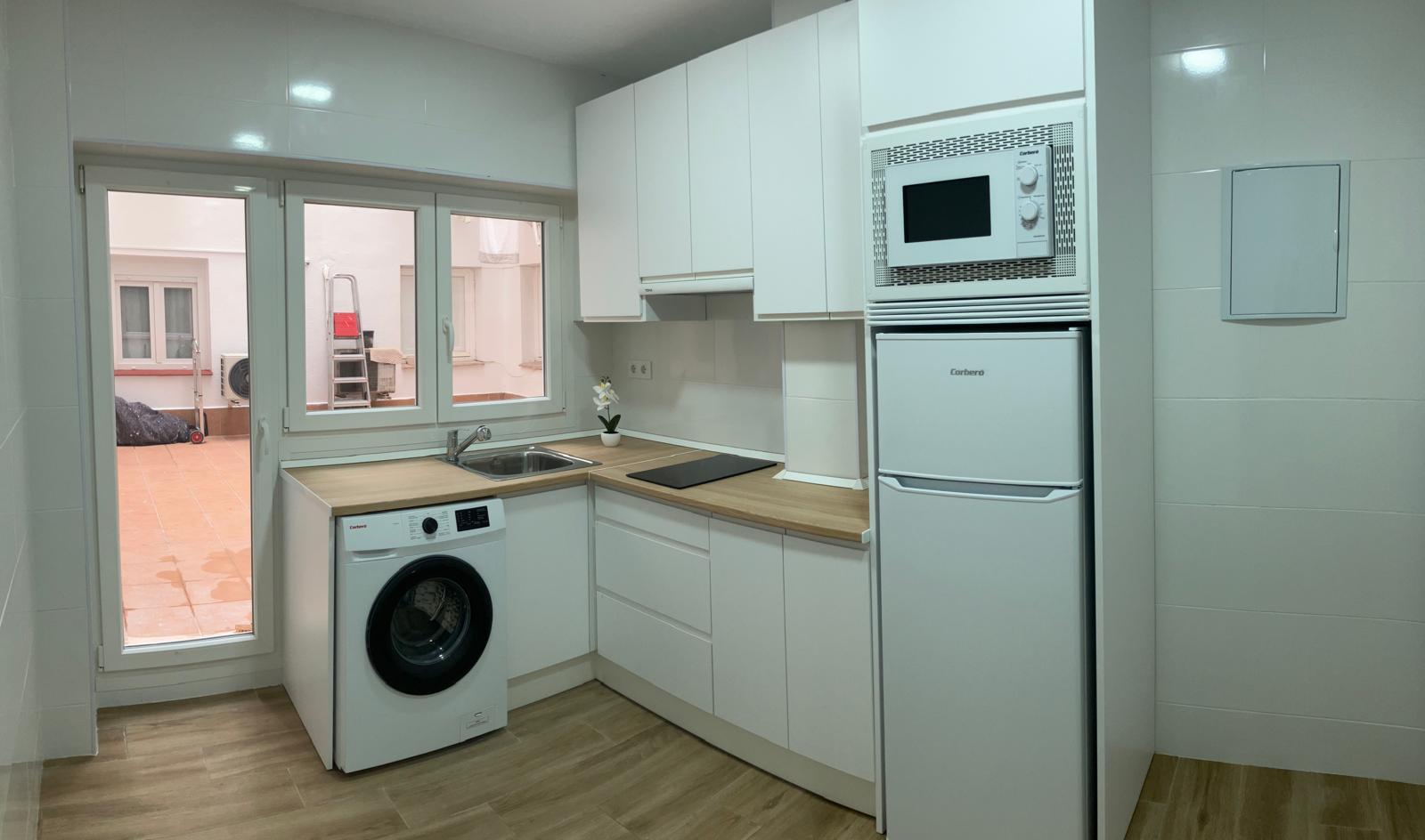- Cocina nueva, con mobiliario blanco y un estilo moderno y funcional. Desde ella se accede a un patio interior de uso exclusivo, perfecto para disfrutar del aire libre, leer o tomar un café.