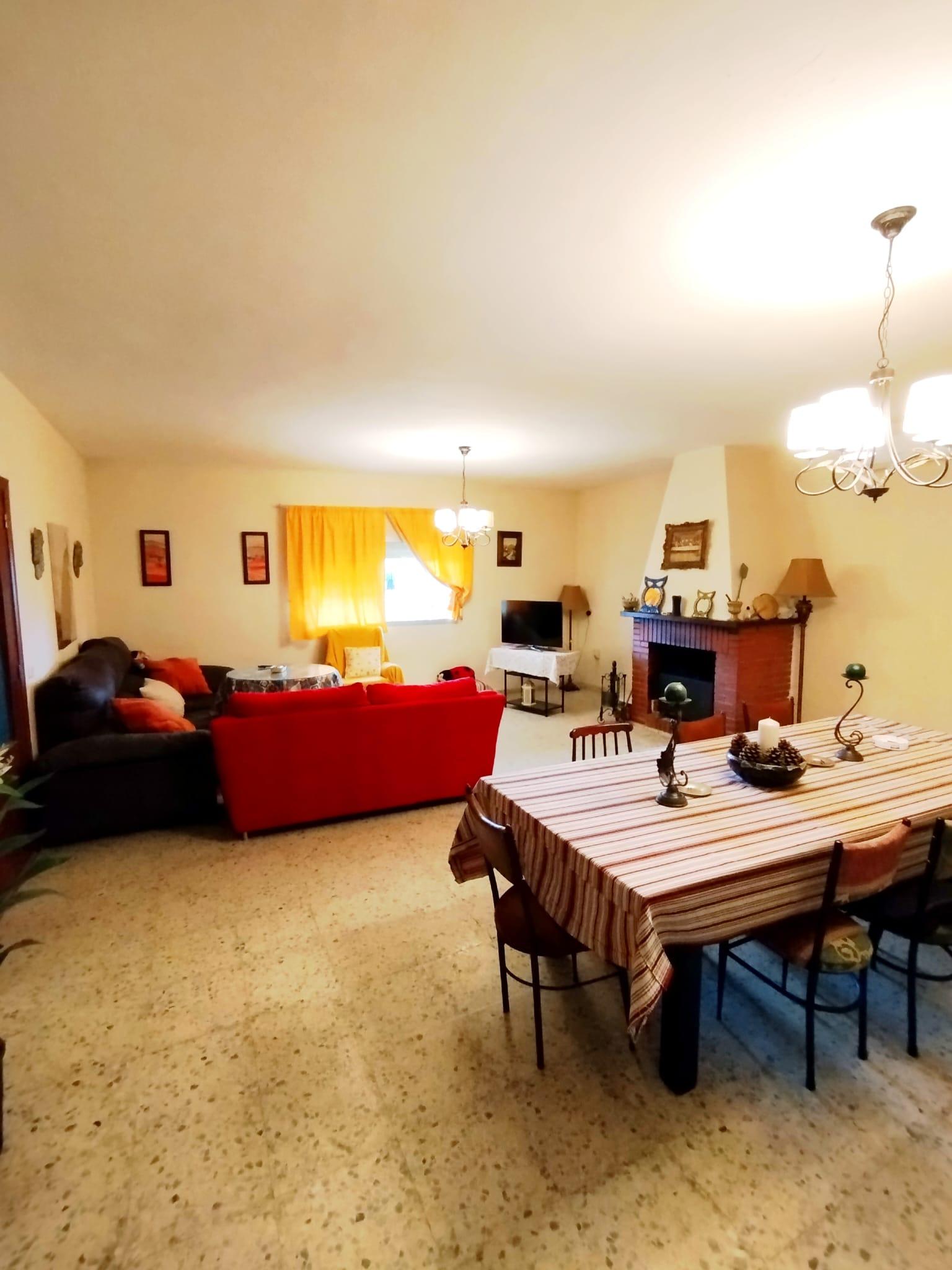 Amplio salón con chimenea y aire acondicionado (split).